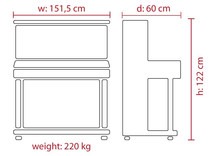 Vevőink körében a legsikeresebb modell. Magas kivitele miatt már nagyobb termekben is megfelelő hangzást kelt, gyönyörű basszusokkal és csengő magas hangjaival egy nagyon élvezhető zongorajátékot biztosít.